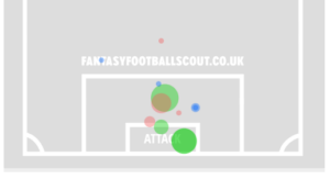Above: Two tries, two goals – Kroupi’s xG map in Gameweek 8