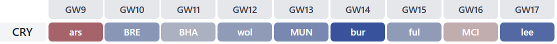 Matchday 9 is not a good entry point for the Frenchman, as Palace are away at Arsenal (although he scored there last season!).