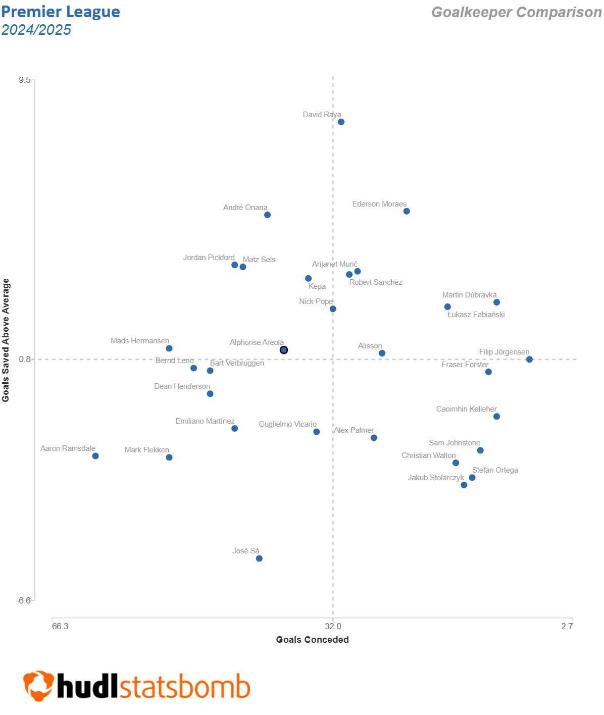 The raw FPL number was not impressive last season, because it played for the degraded team. But according to Statsbomb, he was not the one who could be blamed – he was a little above the par for ‘goals stored above average’ (equivalent to XG prevented). AREOLA SAME:
