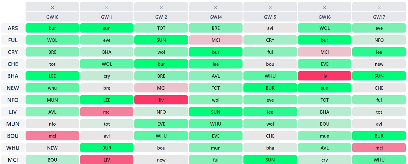 If you take Gameweek 13, when Chelsea and Arsenal faced each other, they still had a fairly high Fixture Ticker.