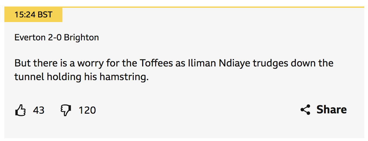 BBC’s direct comments (see below) and Liverpool Echo both suggested he was injured, but we haven’t heard anything from the player himself or David Moyes to strengthen him.